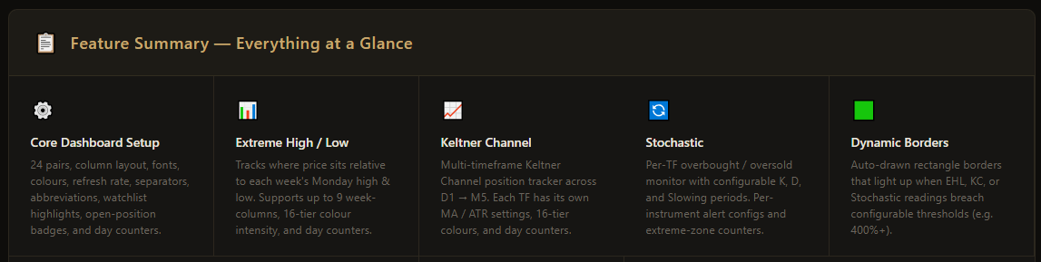 ✓    Complete 3-in-1 Dashboard System (Extreme HL + Keltner + Stochastic)